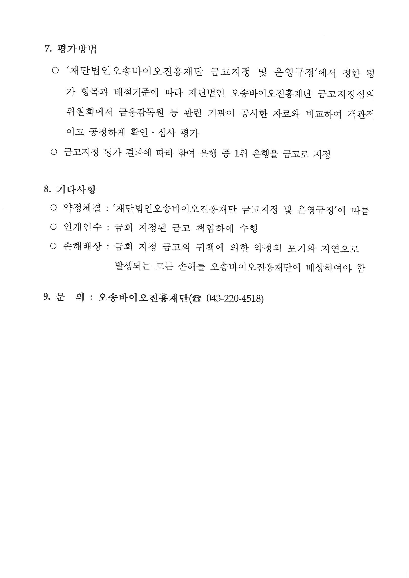 재단법인오송바이오진흥재단금고 지정을 위한 제안 모집 재공고