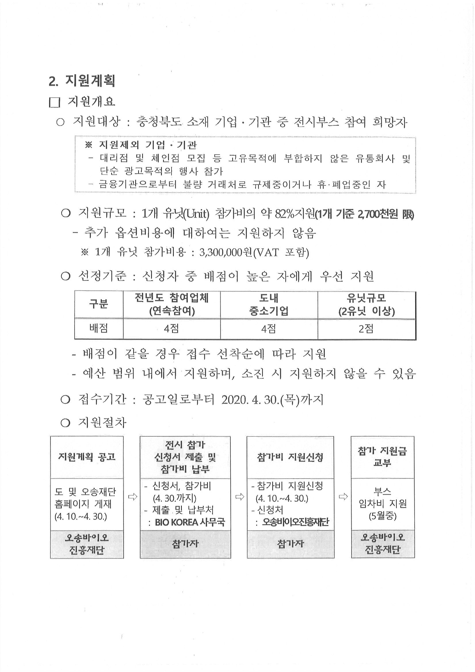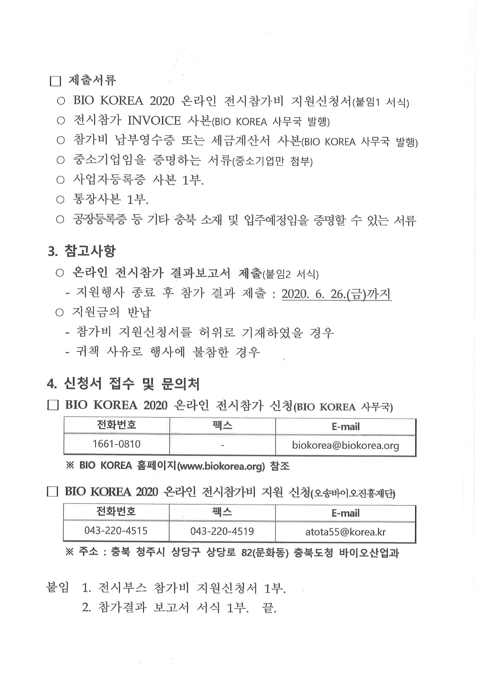 BIO KOREA 2020 온라인 전시참가 지원계획 공고