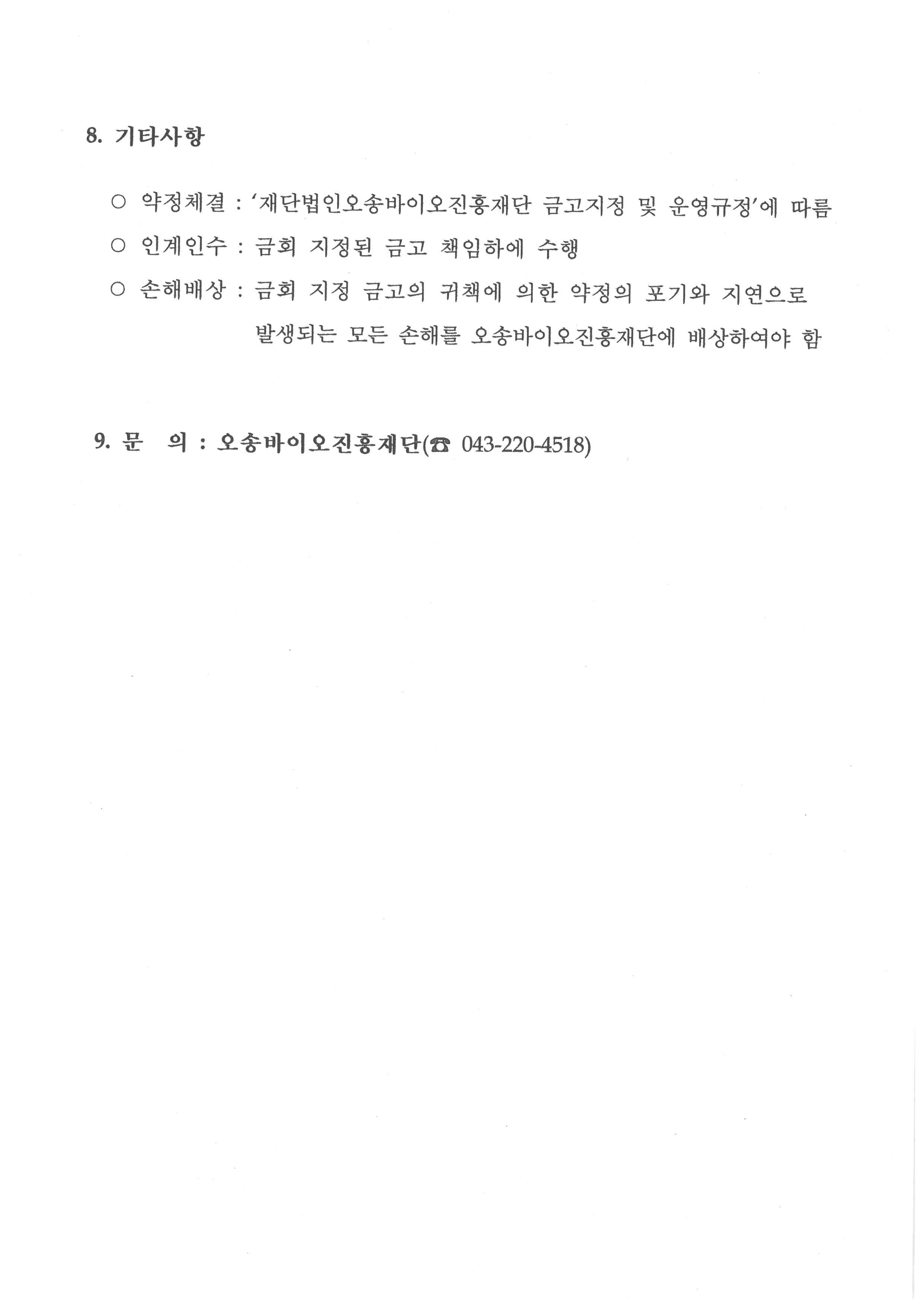 (재)오송바이오진흥재단 금고 제안 모집 재공고