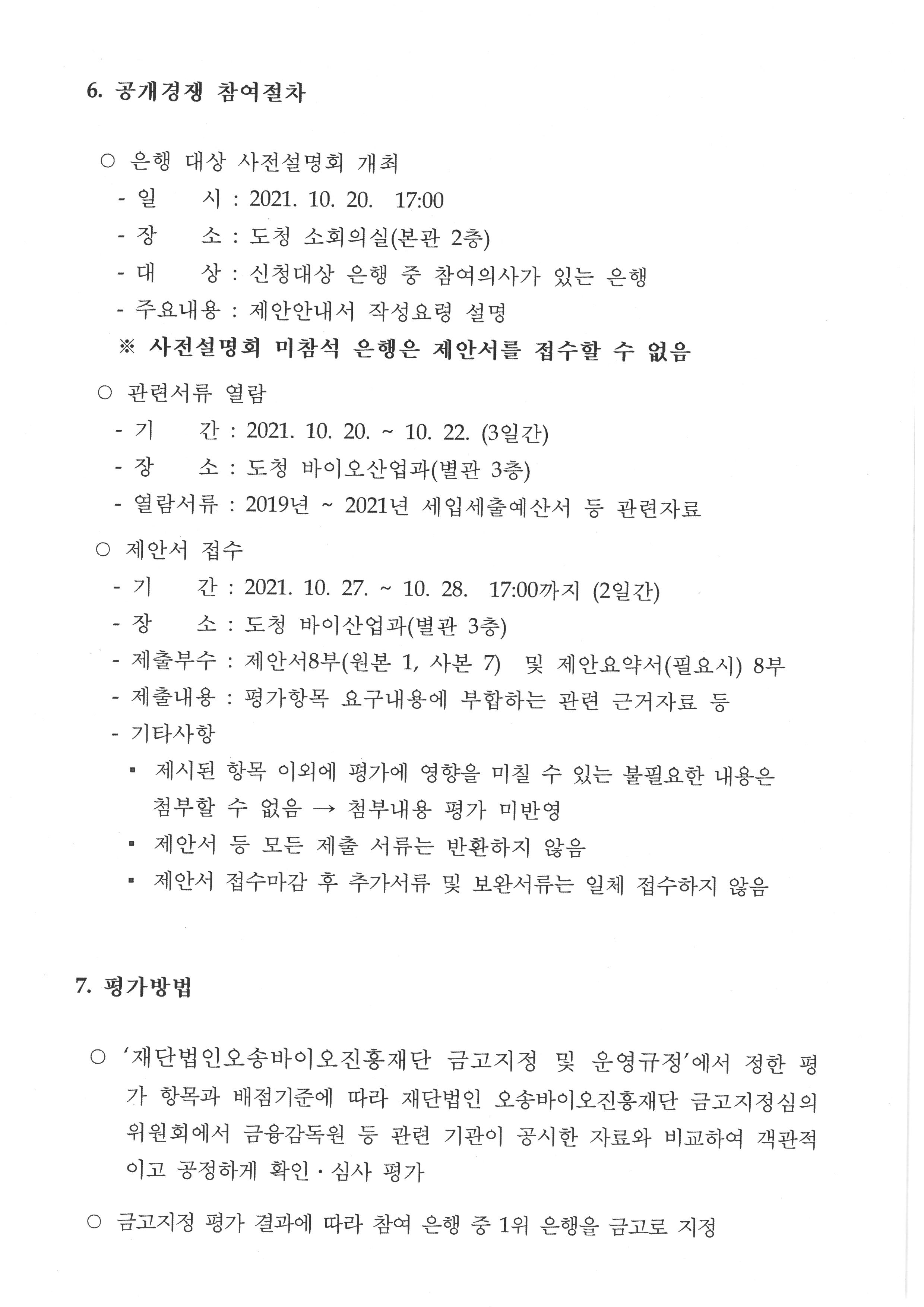 (재)오송바이오진흥재단 금고 제안 모집 재공고